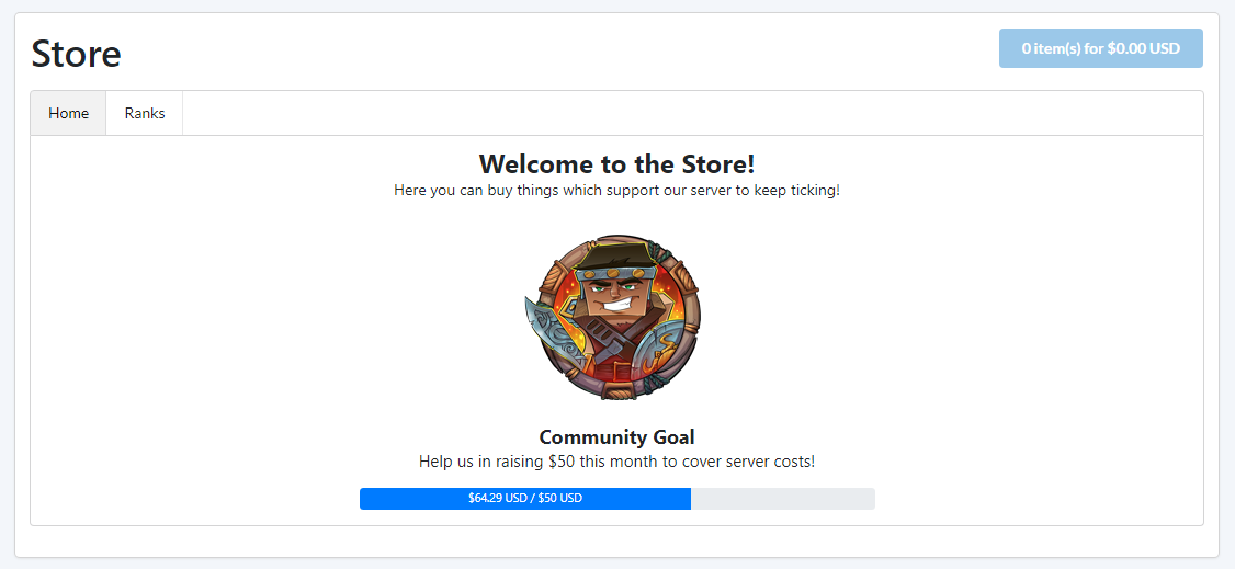 Community Goals could activate pre-defined sales or simply just be another statistic on the page. I think it would be a nice-to-have, specially for smaller servers where they require a few people to pitch in to keep the the server ticking each month, you could possibly even add a monthly-subscription style service to the store which would help with meeting monthly targets.